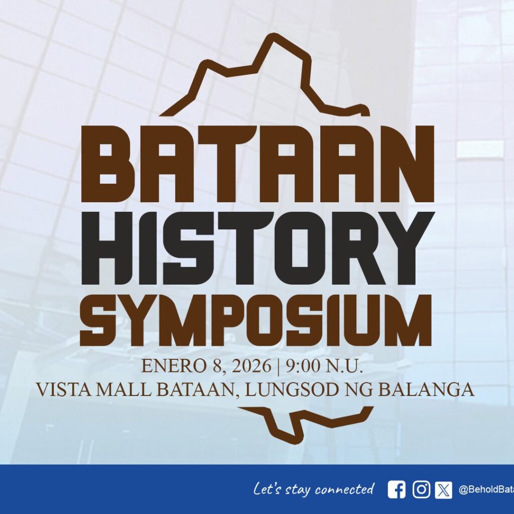 Gaganapin ang Bataan History Symposium bukas, Enero 8, 2026, alas-9 ng umaga, sa Vista Mall Bataan sa Lungsod ng Balanga. Sa pag-alala sa ating pinagmulan, mas pinagtitibay natin ang diwa ng kabayanihan at pagkakakilanlan ng Bataan. Ipagmalaki ang pinagmulan, ipagdiwang ang kabayanihan.