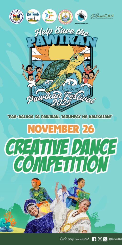Ating panoorin ang makukulay at malikhaing pagtatanghal ng 11 bayan at 1 lungsod ng Bataan sa Pawikan Festival Creative Dance Competition 2025 na ginaganap dito sa Bataan People’s Center! Makiisa sa pagdiriwang ng kultura at pagmamahal sa ating pawikan habang inaabangan kung sino ang tatanghaling kampeon ngayong taon—Bataeños, tara’t makisaya! Click here Other Articles Come